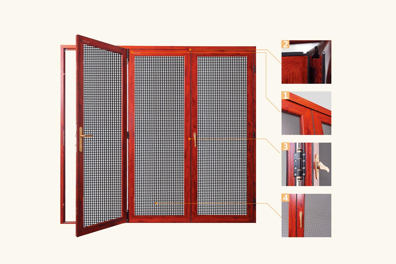 紗網(wǎng)安裝采用折邊后用鋼壓條固定在開啟扇上,確保安裝牢固可靠,具有防盜功能。