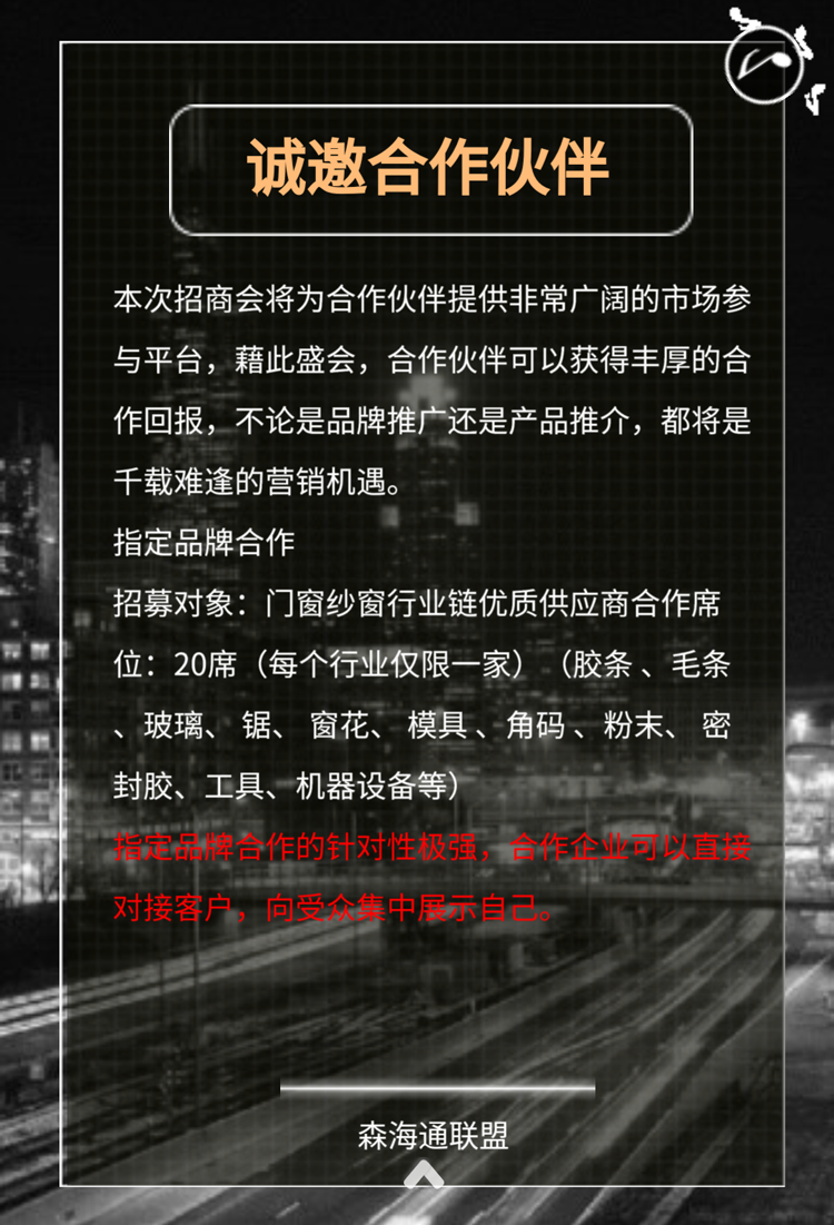 邀請函|“共商 共享 共贏”--2018森海通紗窗行業(yè)聯盟邀您共赴盛